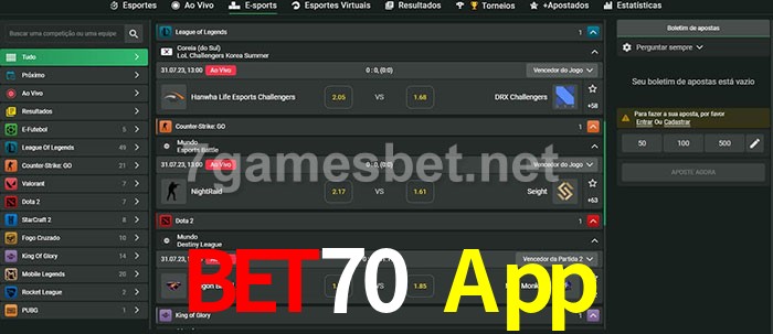 A aposta Bet70 App oferece aos jogadores a experiência mais conveniente de apostas em eSports!